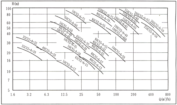 六、CYZ-A型自吸式自吸泵性能型譜圖: