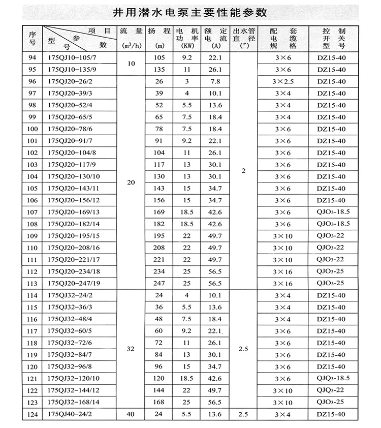 ZAQJ長軸深井泵、深井長軸泵性能參數