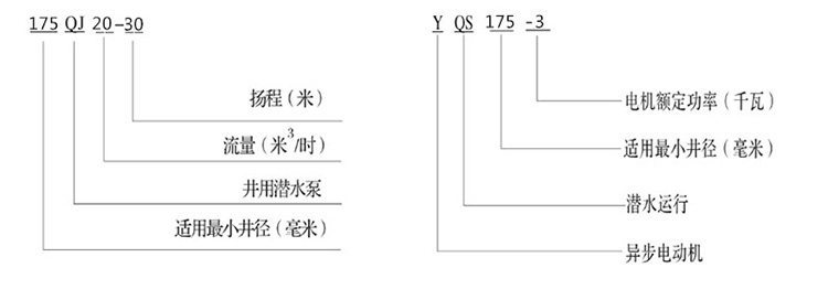 175QJ深井潛水泵主要性能參數(shù):