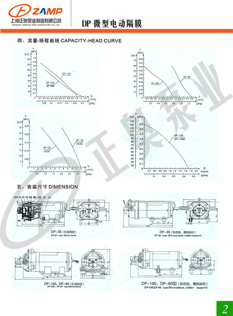 DP微型電動隔膜泵適用于家用自來水增壓、汽車沖洗、輪船上海水淡化,DP隔膜泵適用于反滲透純水機、水處理設備、過濾機、噴霧裝置、化工計量加液及衛生、環保、印刷等行業中使用。