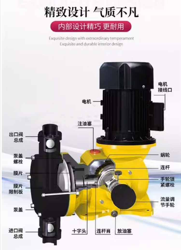 1、鑄鋁殼體,散熱性能高,整體重量輕,適用各種酸堿藥液,無(wú)毒無(wú)味。