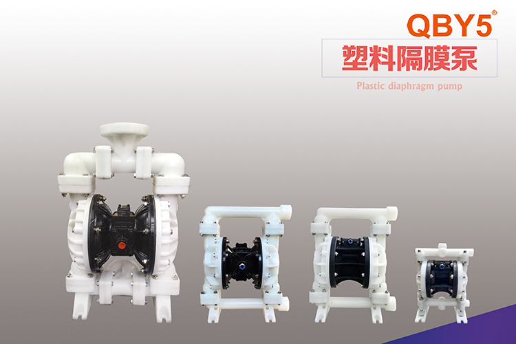 QBY5系列氣動隔膜泵工作原理:在隔膜泵的兩個對稱工作腔中,各裝有一塊有彈性的隔膜,連桿將兩塊隔膜結成一體,壓縮空氣從泵的進氣接頭進入氣閥室后,推動兩個B工作腔內的隔膜,驅動連桿聯結的隔膜同步運動。與此同時,另一工作腔中的氣體則從其隔膜的背面排出泵外。當活塞達到行程終點,閥機構則自動的將壓縮空氣引入另一工作腔,推動隔膜泵朝反向運動,這樣就形成了兩個隔膜的現步往復運動。每個工作腔中又設置兩個單向球閥,隔膜的往復運動,造成工作腔內容積的改變,迫使兩個單向球閥交替的開啟和關閉,從而使液體連續的吸入和排出。