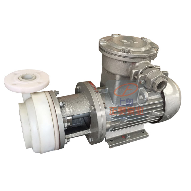 PF型強耐腐蝕塑料離心泵,其泵體泵蓋,葉輪及其輸送介質接觸的零件均采用聚偏氟乙烯或增強聚丙烯模壓加工或注塑加工而成。