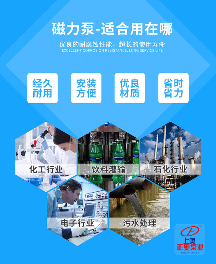 該泵結(jié)構(gòu)緊湊,外形美觀,體積小,噪音低,運(yùn)行可靠,使用維修方便,可廣泛用于石油、化工、制藥、電鍍、印染、食品、科研等單位抽送酸、堿、油類(lèi)及稀有貴重液、毒液、揮發(fā)性液體,以及循環(huán)水設(shè)備配套,特別是易漏、易燃、易爆液體的抽送。