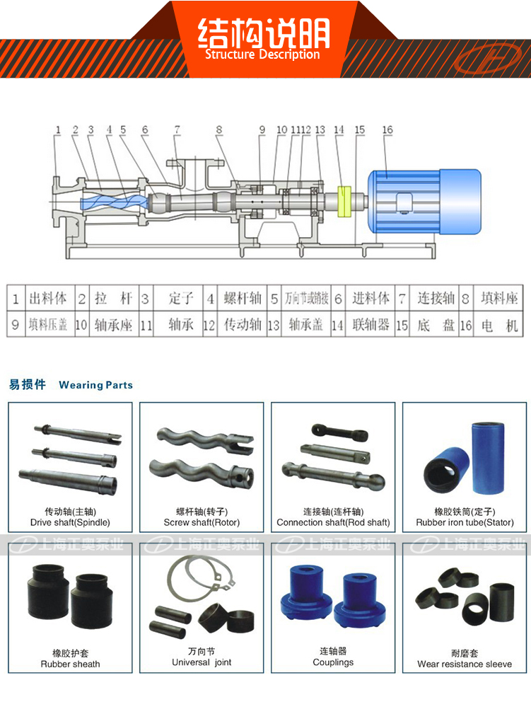 這種泵零件少,結構緊湊,體積小,維修簡便,轉子和定子是本泵的易損件,結構簡單,便于裝拆。