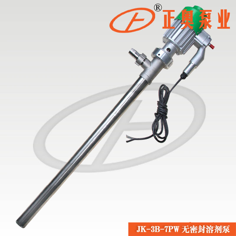 上奧牌JK-3B-7W防型油桶溶劑泵(油桶泵)是正奧泵業公司自主研制而成,各項技術指標均能達到樣機水平,并在樣機基礎上開發了不同使用場合不同抽吸液體的派生產品,該系列泵為輕便型管式軸流泵,具有效率高,使用、維護方便等特點。正奧JK-3B-7W系列不銹鋼電動插桶泵采用無軸封設計,泵管為不銹鋼或工程塑料材質,配用防爆型新型電機,是溶劑類化工液體的理想桶用泵。電動抽液泵概述:JK-3B-7W電動不銹鋼抽液泵(油桶泵、插桶泵)系列泵為輕便型管式軸流泵,具有效率高,使用、維護方便等特點。JK-3B-7W系列電動抽液泵可以直接插入物料桶(最大適用于符合GB/325-1991標準的鋼桶)中抽取桶中液體。可輸送各種油料、帶腐蝕性化學藥水、其他液體。廣泛用于化工、石油化工、精細化工、染料化工、環保、水處理、醫藥、食品等企事業單位部門輸送酸、堿、鹽、油品、飲料等介質及抽吸各種低粘度無顆粒液體。JK-3B-7W系列電動抽液泵同時適用于中小型油田、油庫、煉油廠、加油站、農機站、企事業單位、車隊、車輛船舶等,是輸送溶劑類、汽油、煤油、柴油、輕質燃油的理想工具。工作溫度:-14~100℃。可輸送各種油料、帶腐蝕性化學藥水、其他液體。
