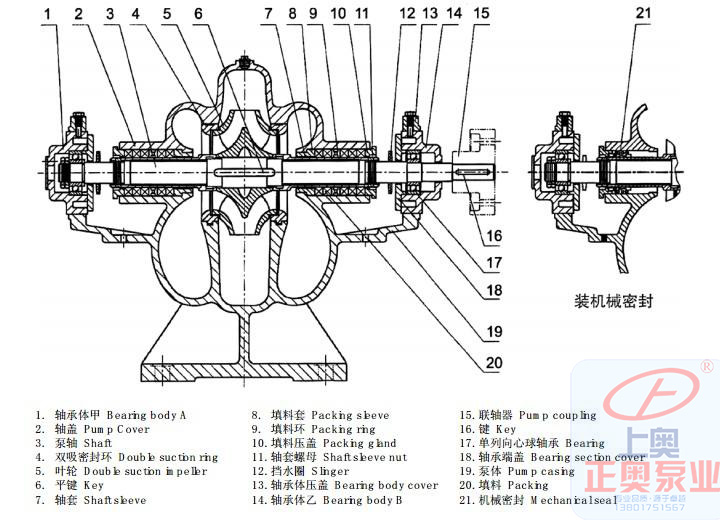 單級(jí)雙吸中開泵結(jié)構(gòu)圖