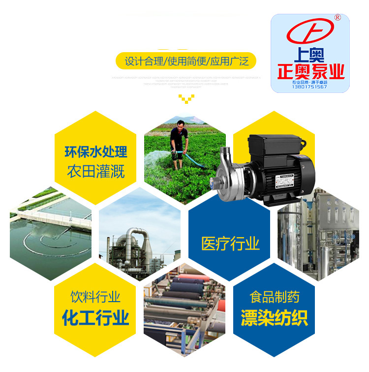 不銹鋼離心式耐腐蝕微型電泵可輸送溫度不高于103℃,含有細小軟顆粒或纖維質,帶腐蝕性或有衛生要求的液體,廣泛適用于食品、飲料、醫藥、污水處理、化工、電鍍、漂染、精細化工等行業使用。