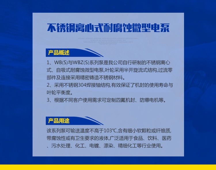 - 下一個產品: WBZ不銹鋼自吸式耐腐蝕離心泵