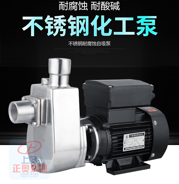 不銹鋼自吸式耐腐蝕離心泵可輸送溫度不高于103℃,含有細小軟顆粒或纖維質,帶腐蝕性或有衛生要求的液體,廣泛適用于食品、飲料、醫藥、污水處理、化工、電鍍、漂染、精細化工等行業使用。