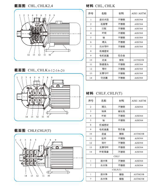 CHL,CHLK和CHLF(T)型多級泵(輕型不銹鋼多級離心泵)主要用于家庭型中央空調循環及工業上液體的傳輸。如脫礦物質水、軟水、凈化系統、輕油等的循環和增壓。
