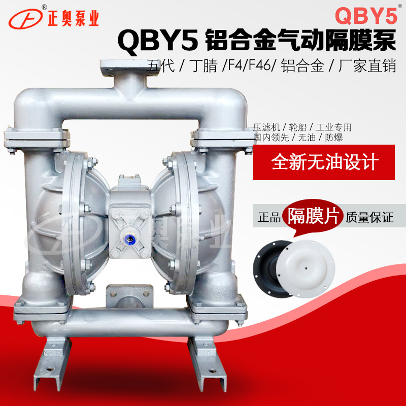 全新第五代系列QBY5型氣動隔膜泵,無油氣動隔膜泵,高吸程高流量隔膜泵,可替代進口隔膜泵等等品牌,壓濾機專用隔膜泵,礦用氣動隔膜泵,船用氣動隔膜泵,工業專用氣動隔膜泵。,取代部份離心泵、螺桿泵,來應用于石化、陶瓷、冶金等行業,產品設計均參考國外隔膜泵樣機。氣動隔膜泵與電動隔膜泵結構緊湊,外形美觀,體積小,噪聲低,運行可靠,使用維修方便,廣泛用于石油、化工、制藥、電鍍、印染、食品、科研等單位抽送酸、堿、油類及稀有貴重液、毒液、揮發性液體,以及循環水設備配套特別是易漏、易爆、易燃液體的抽送。
