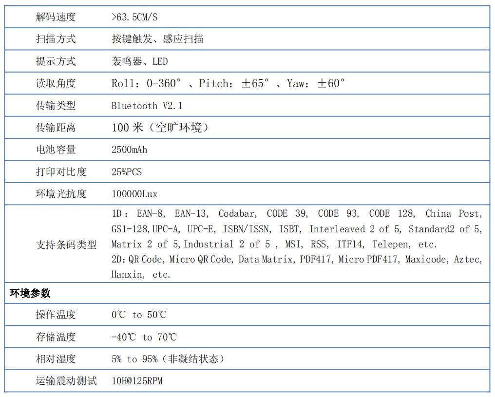 Ca-405-W藍牙無線手持條碼掃描槍的高性能配置: